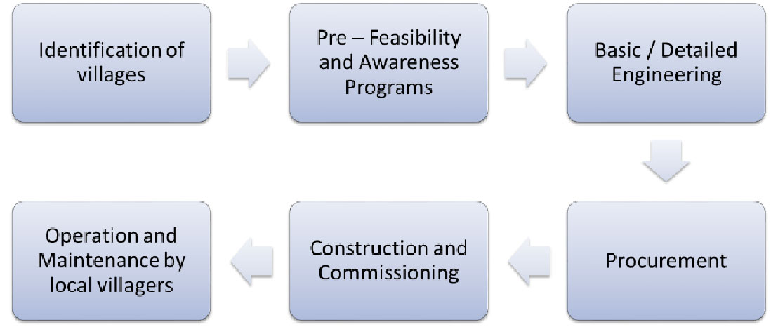 Apart from creating improved access to electricity, the plan is to generate a sense of ownership to the project from the community by ensuring their participation from the very beginning. This enables long term ownership of the system and hence its sustainability. Essentially the idea is that each household contributes a certain amount per month as decided by the Gram Sabhas to contribute towards basic maintenance of the system even though in practise this might pose as a challenge particularly with regards to regularity in contribution.